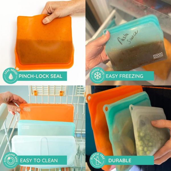 Made using food-grade silicone, the reusable food pouches are super strong, durable and resistant to tearing. The innovative pinch-press top works perfectly by simply squeezing together the top edges of the bag to secure, so no fiddly plastic rods in sight.